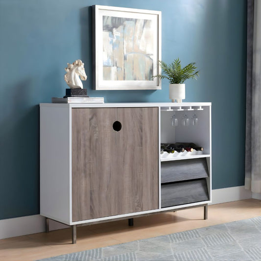 Wine Cabinet White / Dark Taupe and Distressed Grey Gliding Drawer