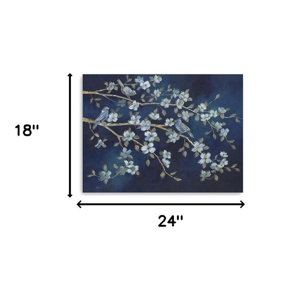 18" x 24" Navy Blue Watercolor Midnight Bird Rendezvous Canvas Wall Art