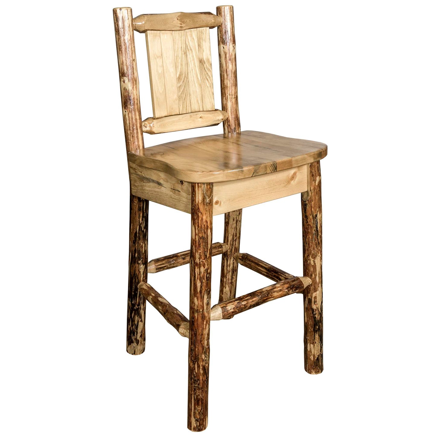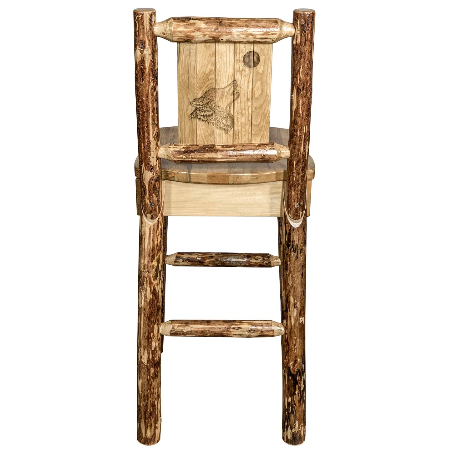 Montana Woodworks Glacier Country Collection Barstool w/ Back, w/ Laser Engraved Design