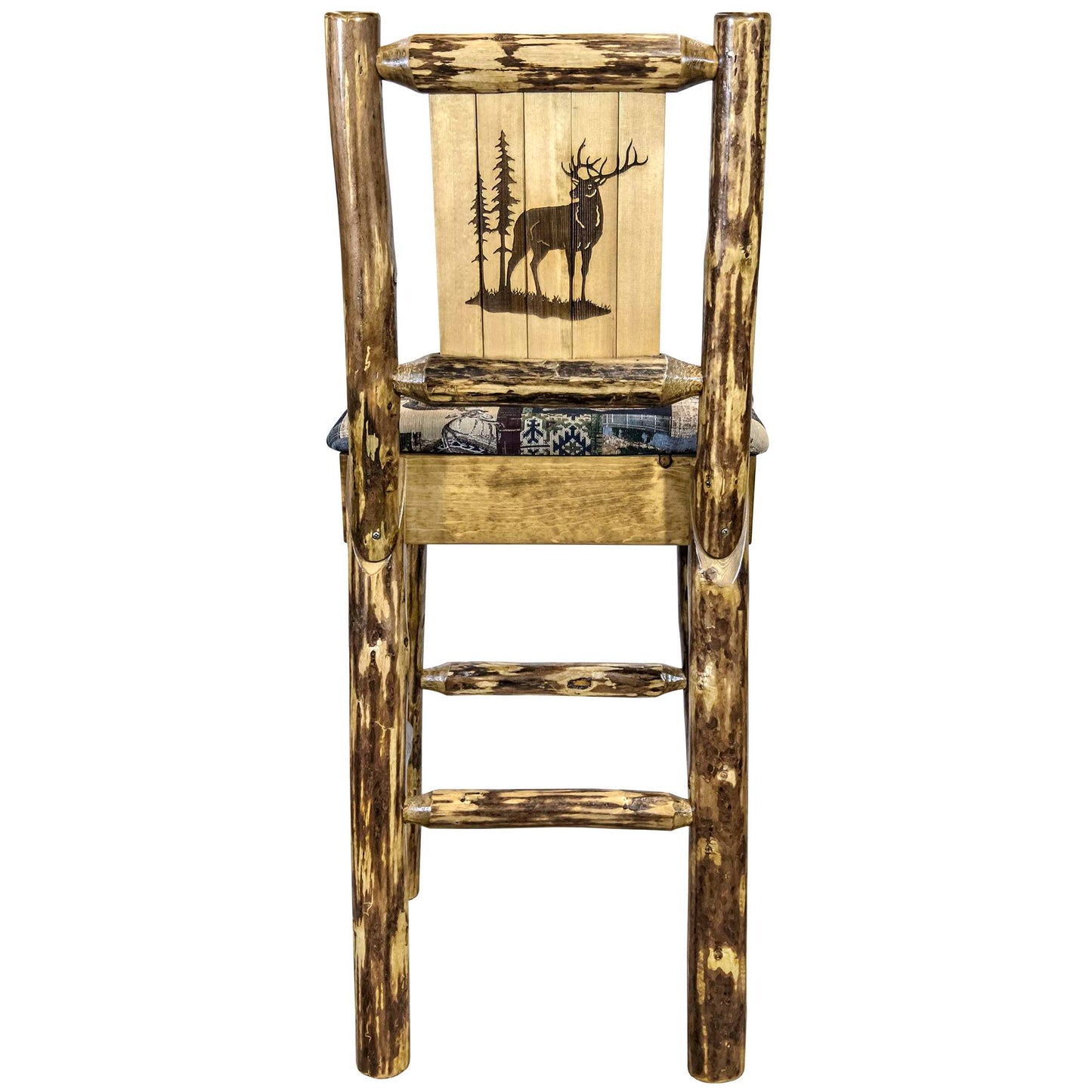Montana Woodworks Glacier Country Collection Barstool w/ Back - Woodland Upholstery, w/ Laser Design