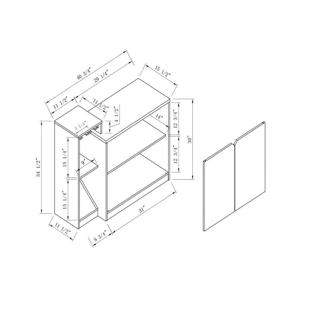 Designed with both display and functionality in mind, the cabinet features a removable wine bottle rack that securely holds up to four wine bottles, allowing you to customize the interior to suit your needs. The multi-level tabletop design creates visual interest and offers convenient space for displaying décor, setting up a serving area, or keeping frequently used items within easy reach. Mounted against a wall, it adds a modern, space-saving accent to your home bar, dining area, or entertaining space.
